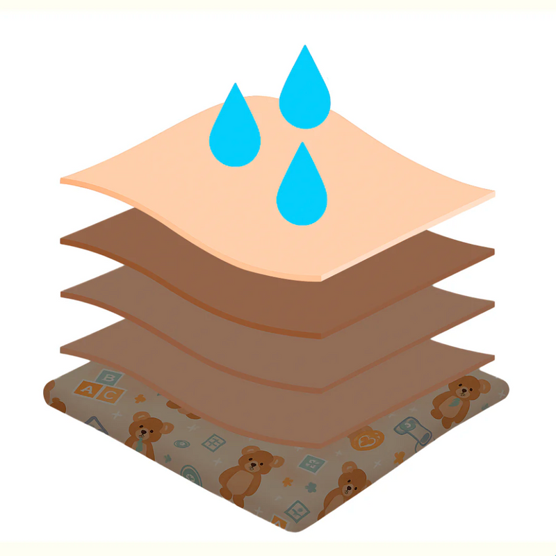 Première couche en bambou hypoallergénique, respirant et certifié REACH. 👉 Une légère sensation d’humidité aide l’enfant à prendre conscience de ses besoins.